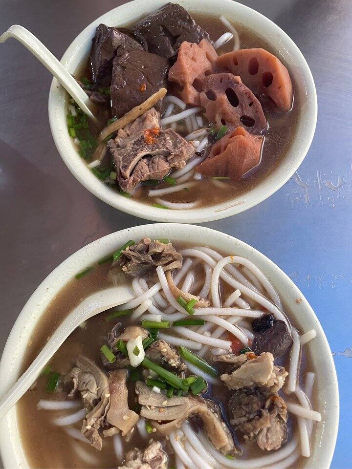 周末去了一趟恩平,吃了那边当地特色的莲藕鸭血濑粉和咸鸡濑粉,我对这种粗粉不是很感兴趣,但是这家店药材做的汤底融合了莲藕的甜味,那个味道绝了,我把汤都喝了。还有当地小吃豆角糍,里面是豆腐角加馅料裹在一起油炸,外面包一层薄薄的粉皮,挺特别的,还是恩平的朋友听说我去了恩平,托她的朋友帮我买了几袋子。