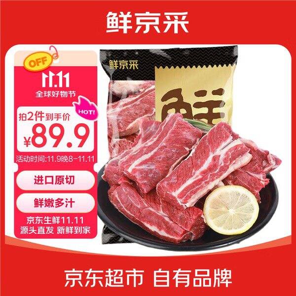 拍2件💰78,鲜京采 巴西进口原切牛肋肉2斤 牛胸腹部位肋条肉