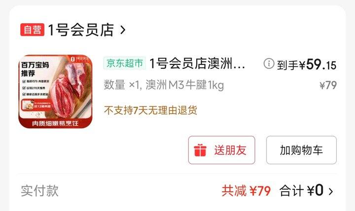 拍号会员店澳洲安格斯M3原切牛腱子肉 2斤