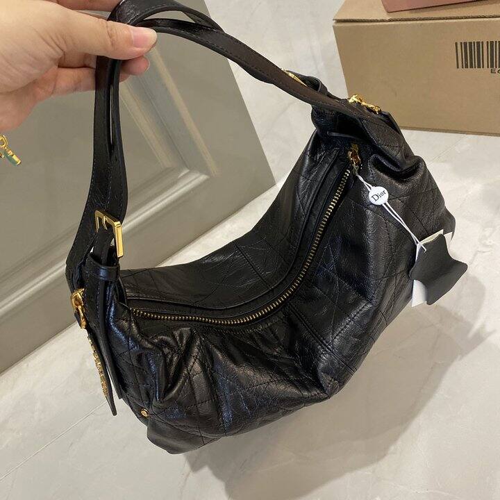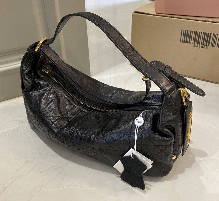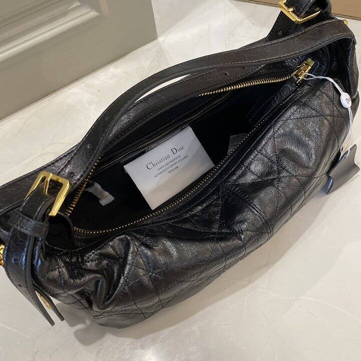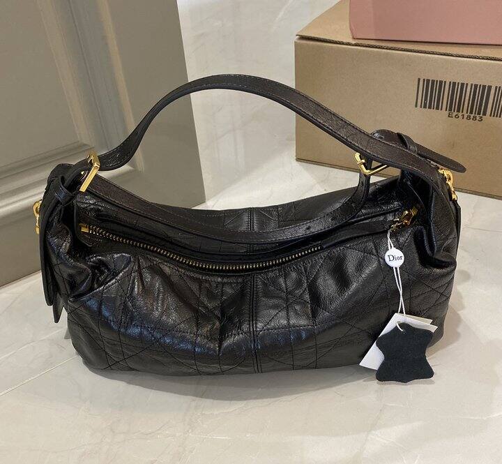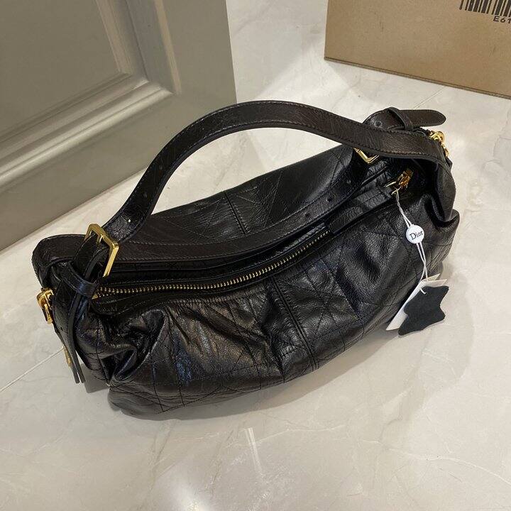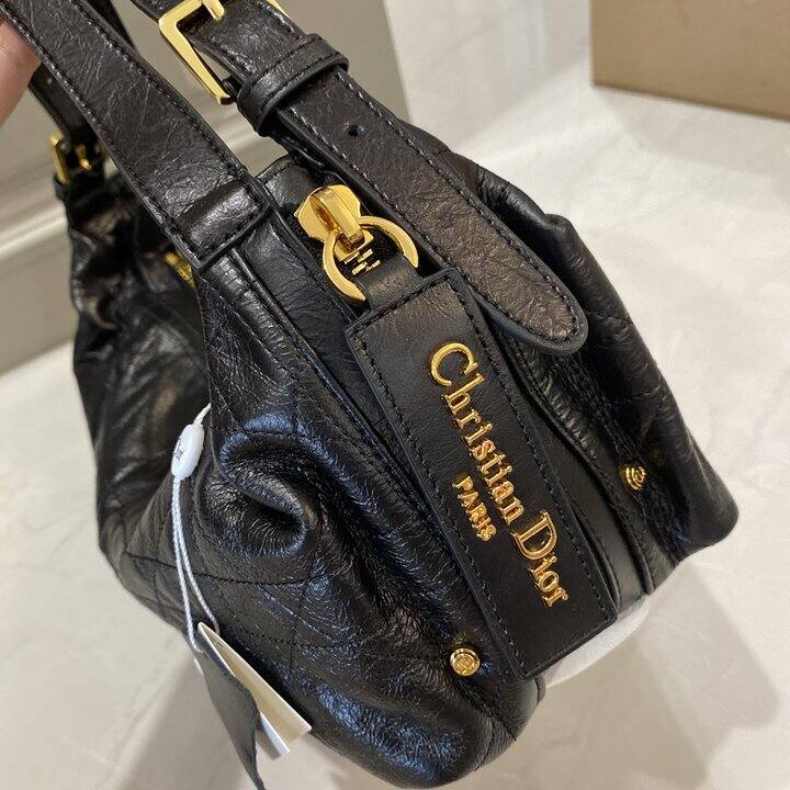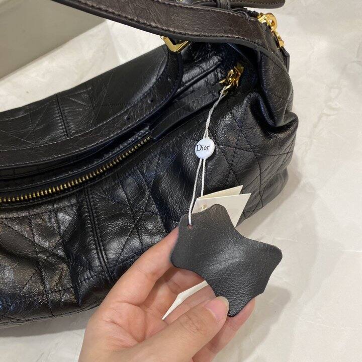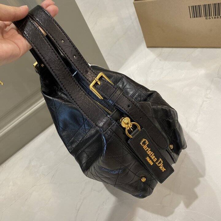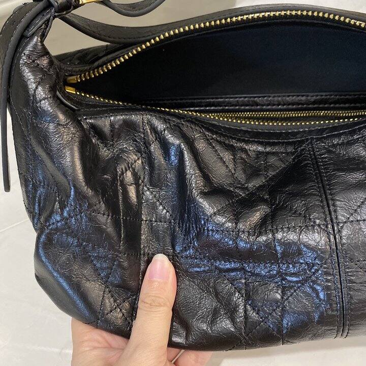 Dior D-journey 黑色爆裂纹油蜡皮包