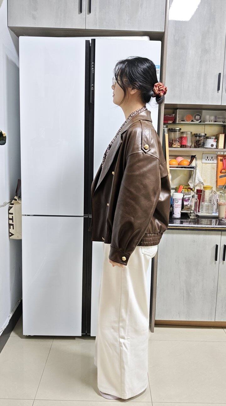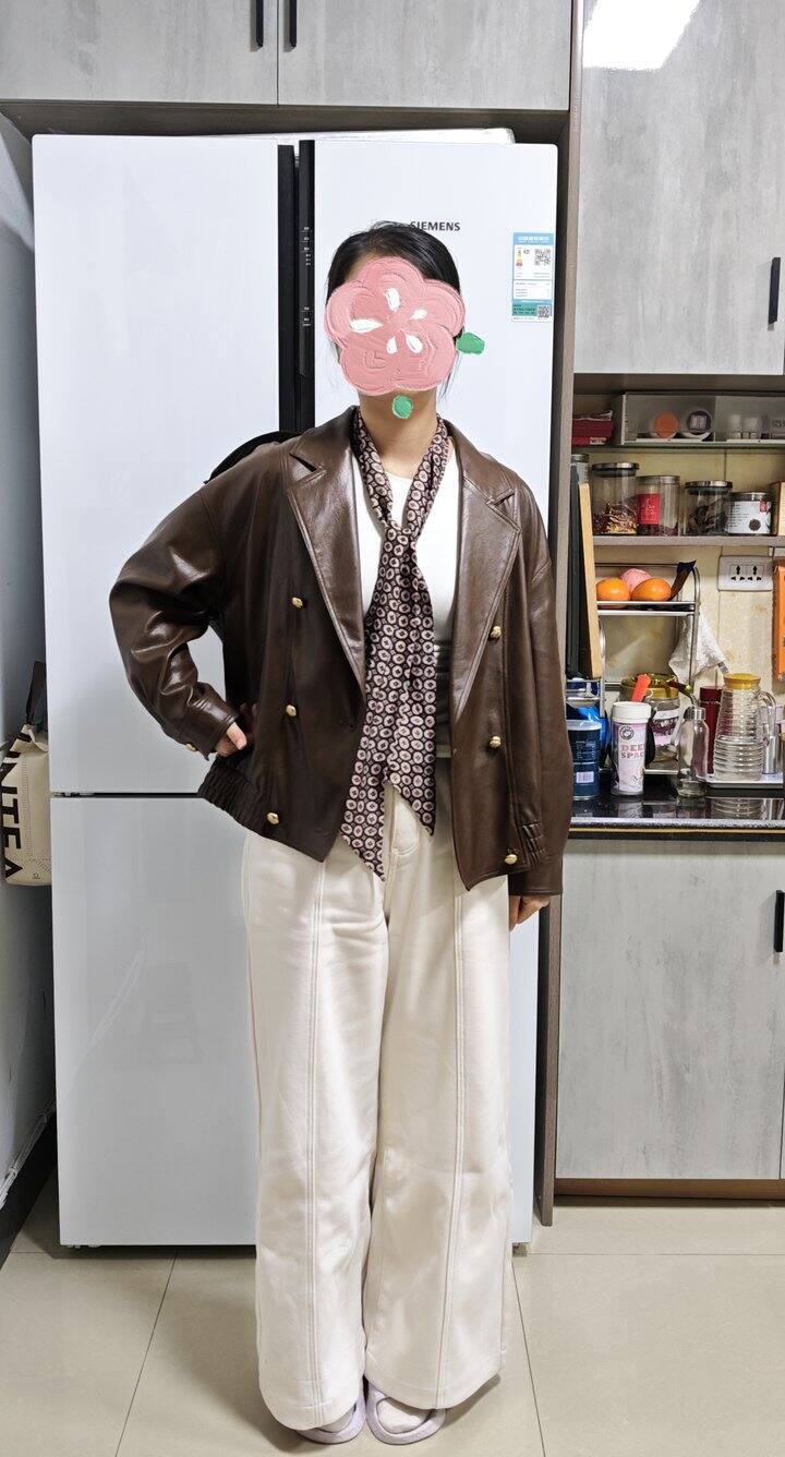 以前都是搭配深色裤子,后来发现官搭是白裤子,那就穿白色。上午内搭穿的亚麻色针织衫,主打从外套到内搭渐变色,但是有点热,下午换了白色内搭。