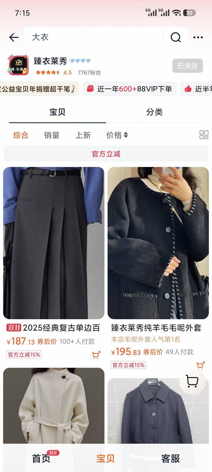 199元于直播间购入,淘宝店臻衣莱秀,放在最后面了,每天20:10直播。