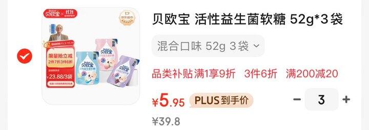 贝欧宝 活性益生菌软糖 52g*3袋