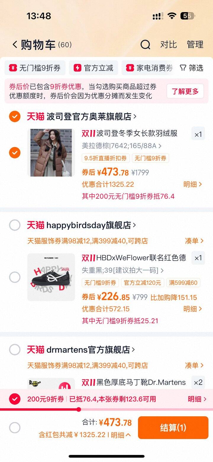 4️⃣购物车里数量改成1,叠加88vip九折券到手474💰