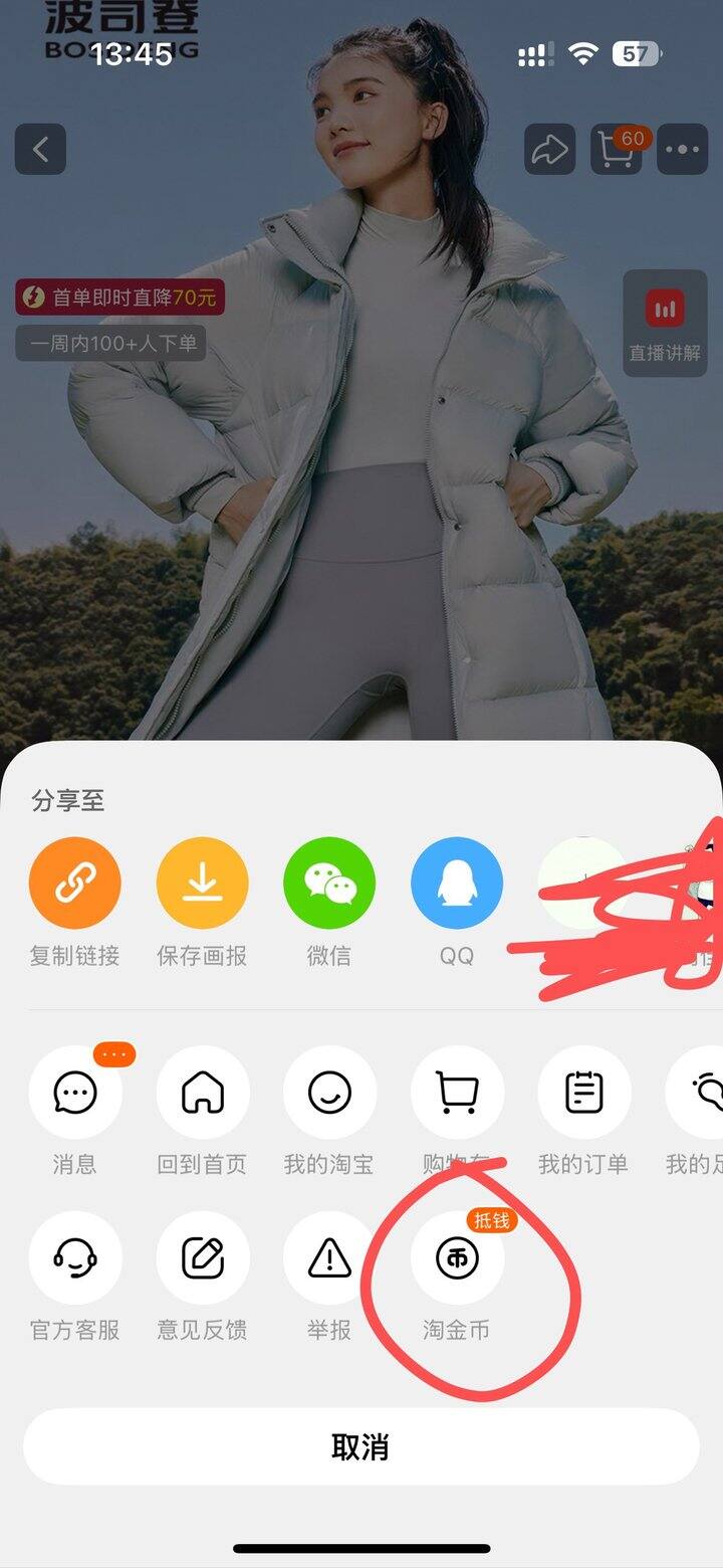 3️⃣右上角淘金币再加一次购物车抵扣15,