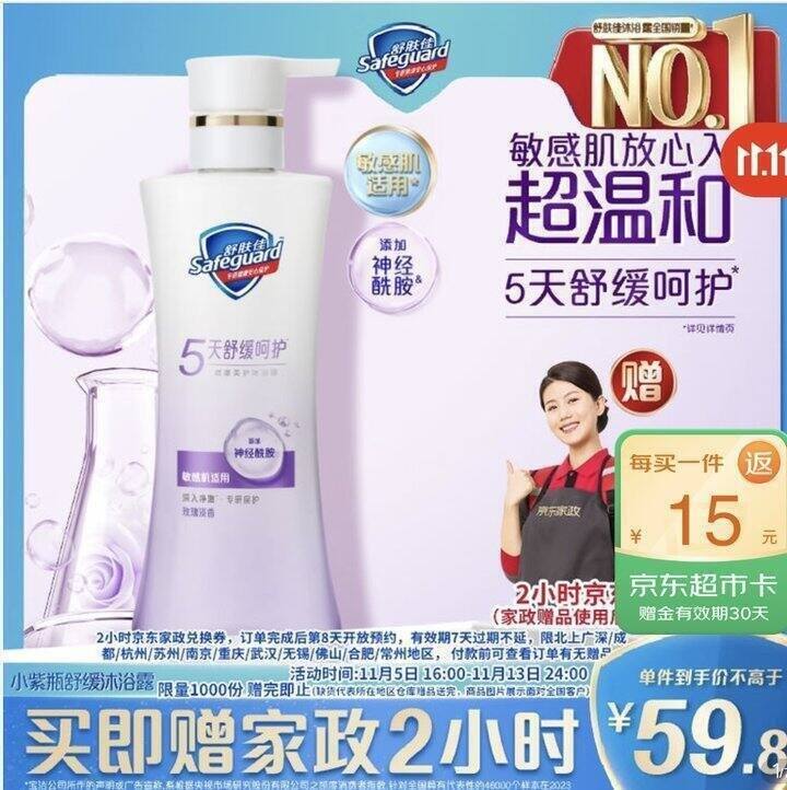 舒肤佳小紫瓶59元【送15元卡+保洁两小时】https://u.jd.com/Tglb3se