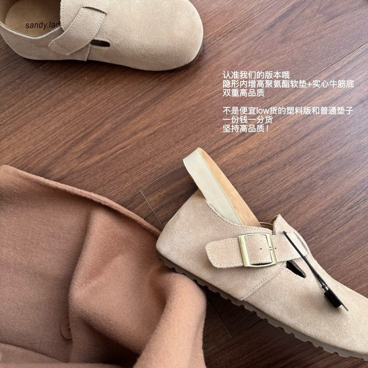 牛皮绒+聚氨酯软底+实心牛筋底每一个原材料拉出来都是高品等级如果需要一双很耐穿又耐磨的勃肯还不贵 sandy贴心为你们准备好了舒服到起飞的脚感全包款式时间跨度会更久哦 一年四季除了冬天有点冷其他三个季节完全都好穿哈