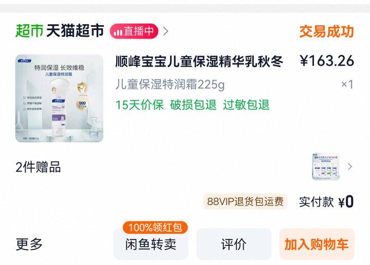 面霜买了顺峰宝宝,充了超市卡,去掉用的赠金和20返卡,实付大概135