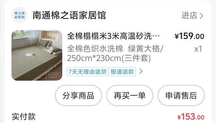 由于我是一个皮肤很敏感又很事的人,之前买过这种绗线的被单,感觉太磨人了,不喜欢用。但朋友推荐说有孩子用床盖床上很板正。还是决定买个来试试。这家的铺上几乎没有磨人的感觉,挺满意!又回购了一套,两款材质没什么区别,用起来差不对。