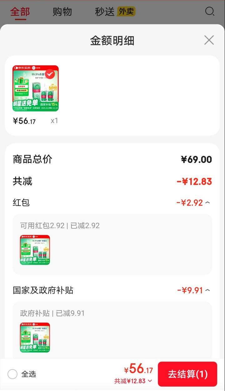 政府补贴9块9!470毫升大瓶的,两瓶59,有小红包的话更便宜。比我30号买的还便宜,我那会还要买4瓶才有好价,刚需可以冲!