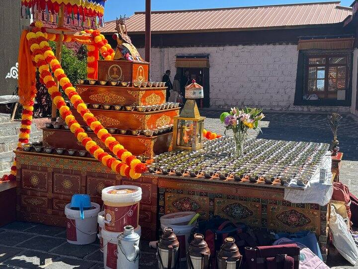 所以今天信众很多,他们带着甜茶还有饼子到寺庙朝拜和相聚。