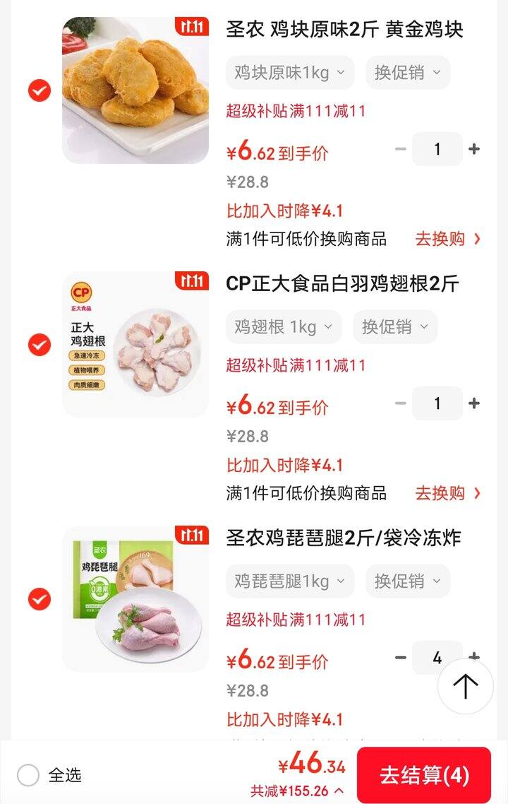 需要111-11券,叠加5件9折。拍7件,一两斤袋才六块多。史低价!没有的话贵一点点~