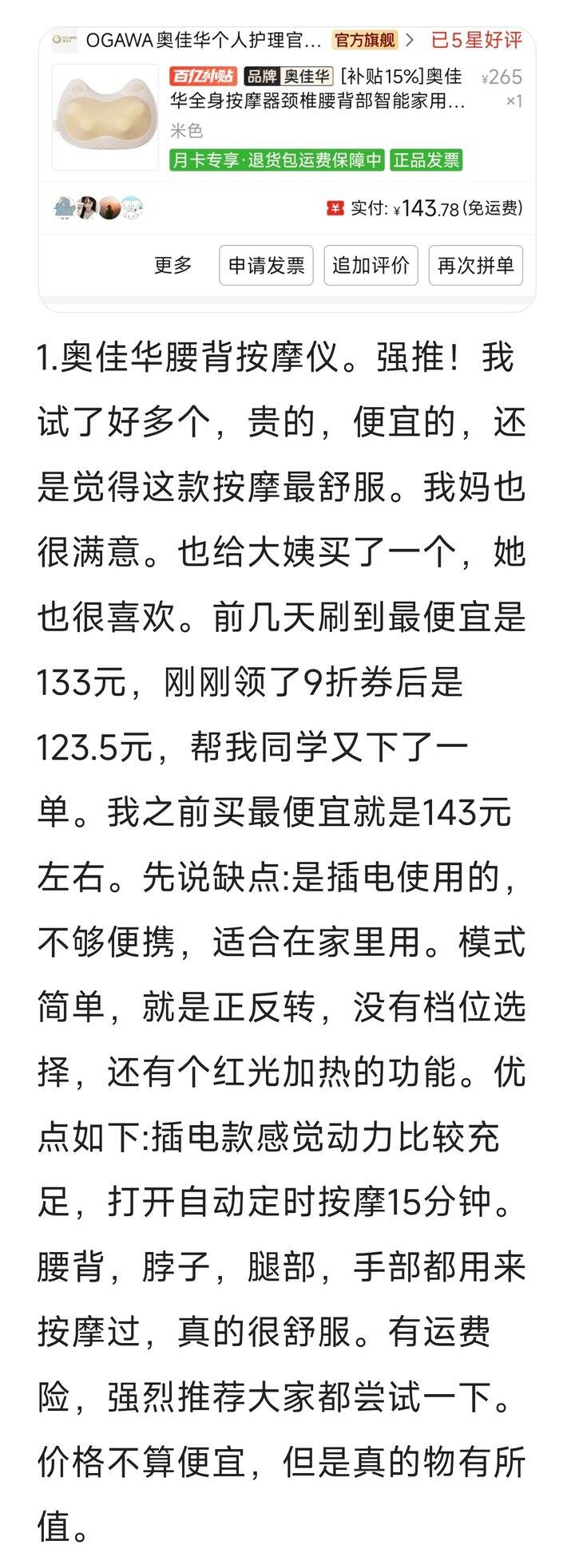 在拼多多买了好多东西,我会慢慢给大家反馈,就是不能发链接感觉很郁闷[鹿摊手][鹿抓狂]这一期是打工人的放松神器-按摩仪~