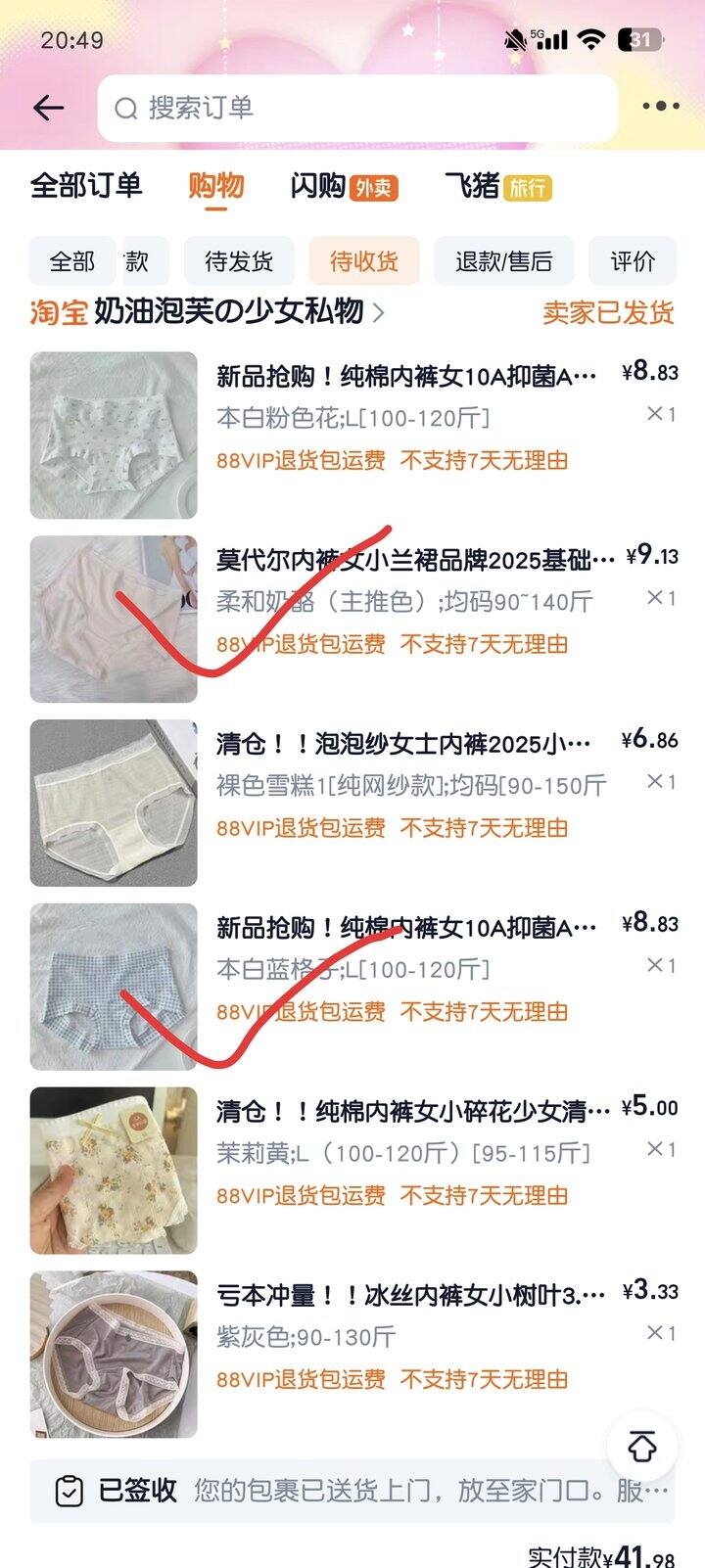 新买的内裤,试了一下,都挺好穿的。花色我也喜欢,嘻嘻。