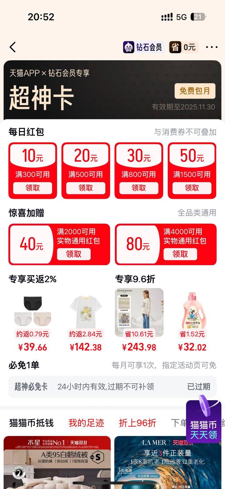 2⃣️ 在天猫里搜超神卡 领800-30的红包🧧