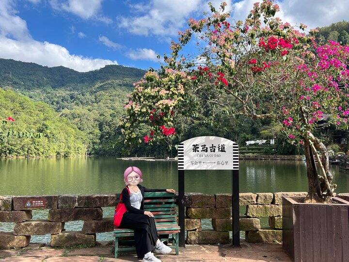 ⛲️去酒店放下行李以后去还车,然后去了【茶马古城】,外面是一大片商业区,公园门口有卡皮巴拉之类的小动物,观光车上去之后定波湖看鱼鹰表演,缆车上山有一段茶马古道遗址,内部公园挺大,建议买票,含观光车和缆车,倒也没有特别的,就当普通公园逛逛。