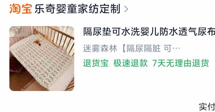 7、可水洗的隔尿垫 (先买一个70*90的 后续看宝宝用不用的到)
