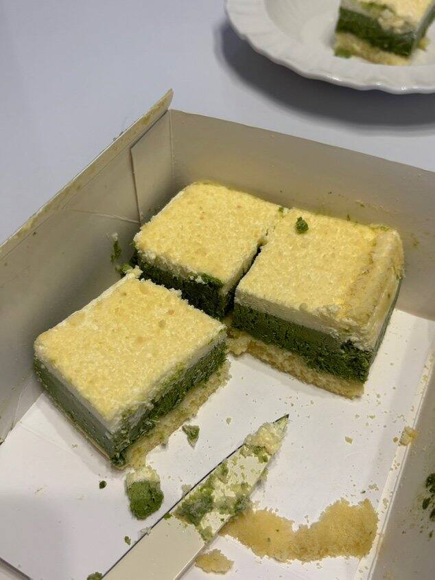 切个抹茶的吃吃,有点压坏了,抹茶味儿很纯。