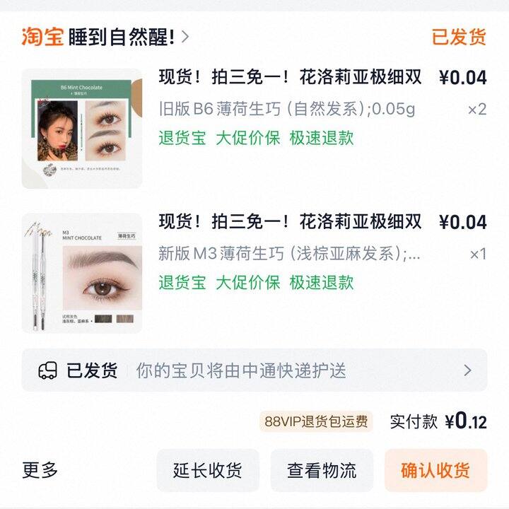 ✨眉笔:常年消耗产品,种草植村秀砍刀,奈何十八线🈚专柜,选色困难准备先搁置。继续购入老选手花洛利亚薄荷生巧,使用淘金币加抵金。