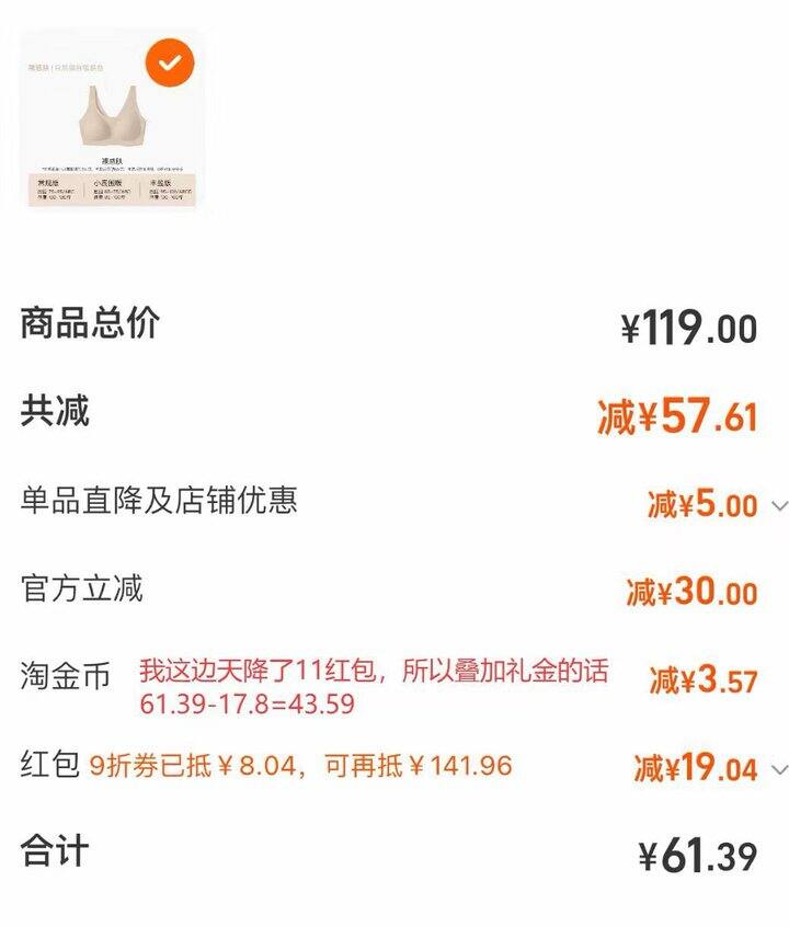 ❷ 内衣上面领17.8礼金