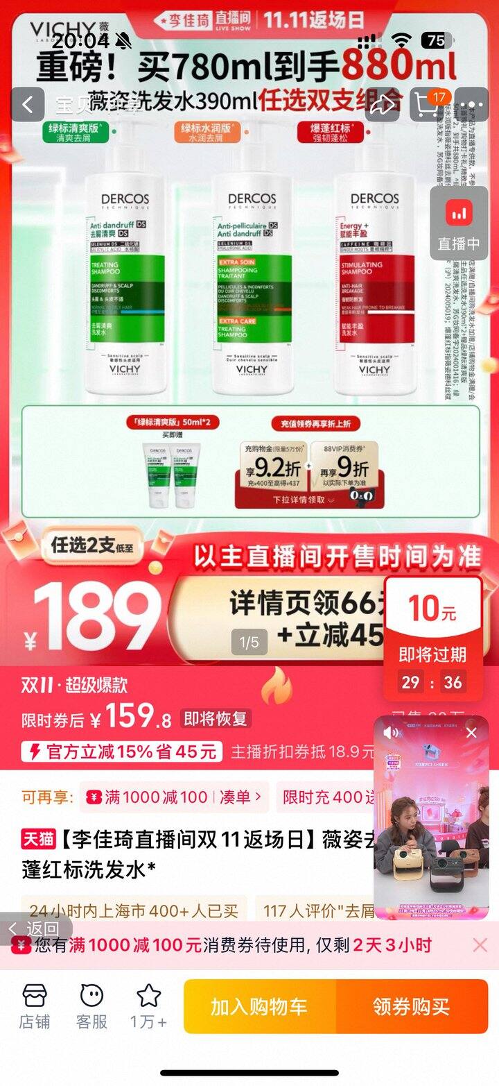 1️⃣复制链接进入李佳琦直播间领取主播9折券