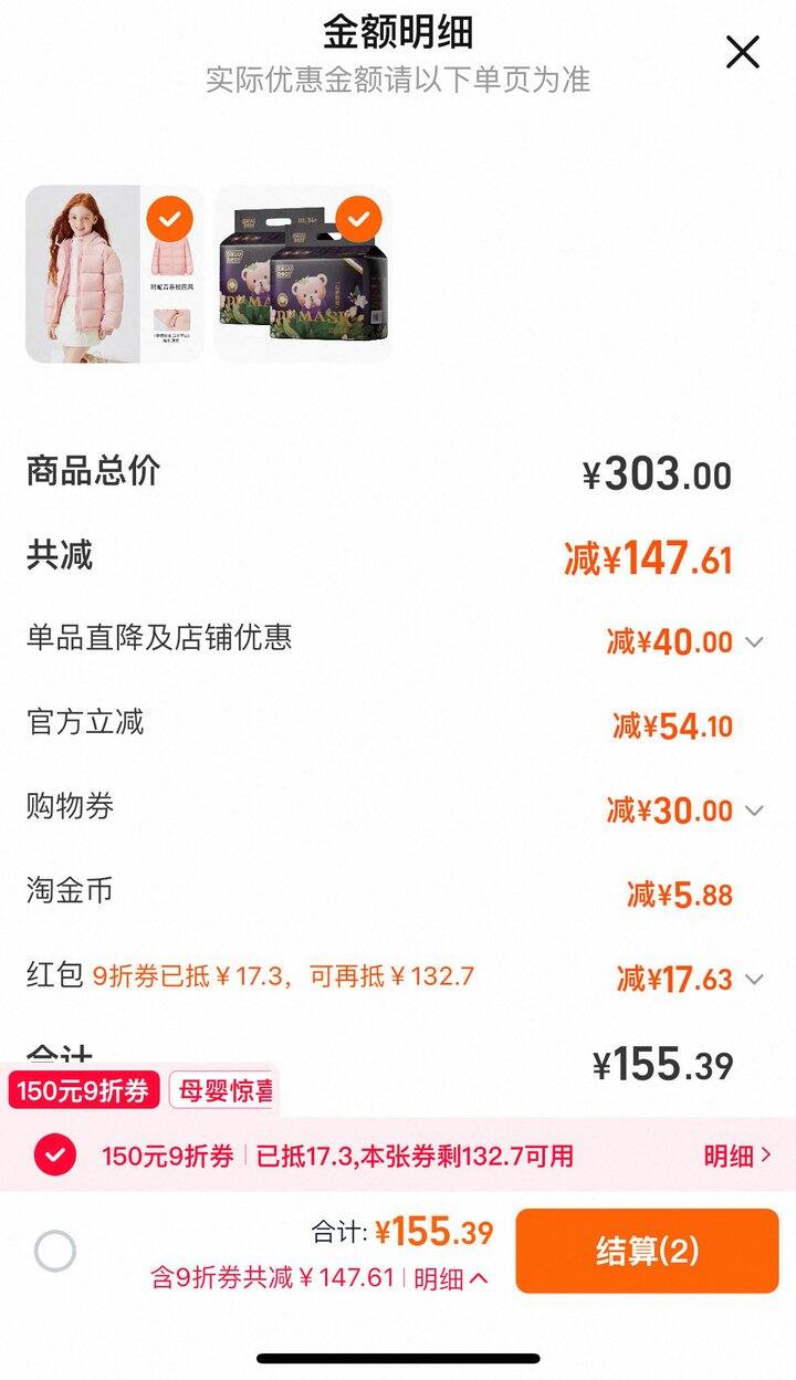 母婴券300-30湊單拍一后退