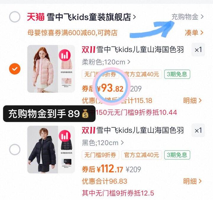 ❸羽绒服领券后收藏不拍