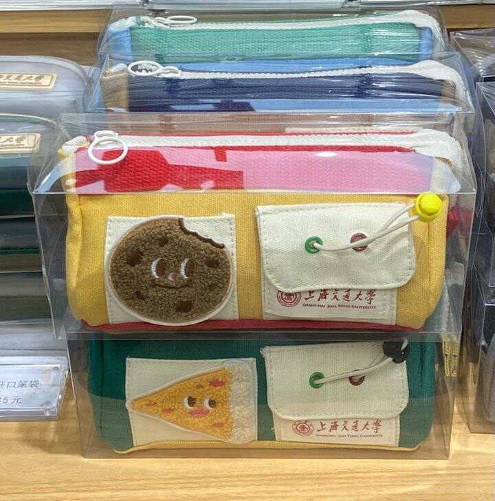 买了我对象他们学校的这些文创。这个笔袋很可爱,庙门这个挂件和摇摇乐挂件买了一对。
