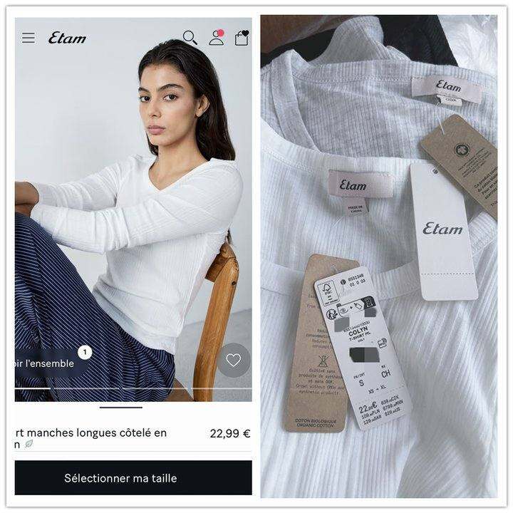22.99欧元 25年新品在售 法国艾格Etam螺纹针织T恤 老钱风简约长袖打底衫