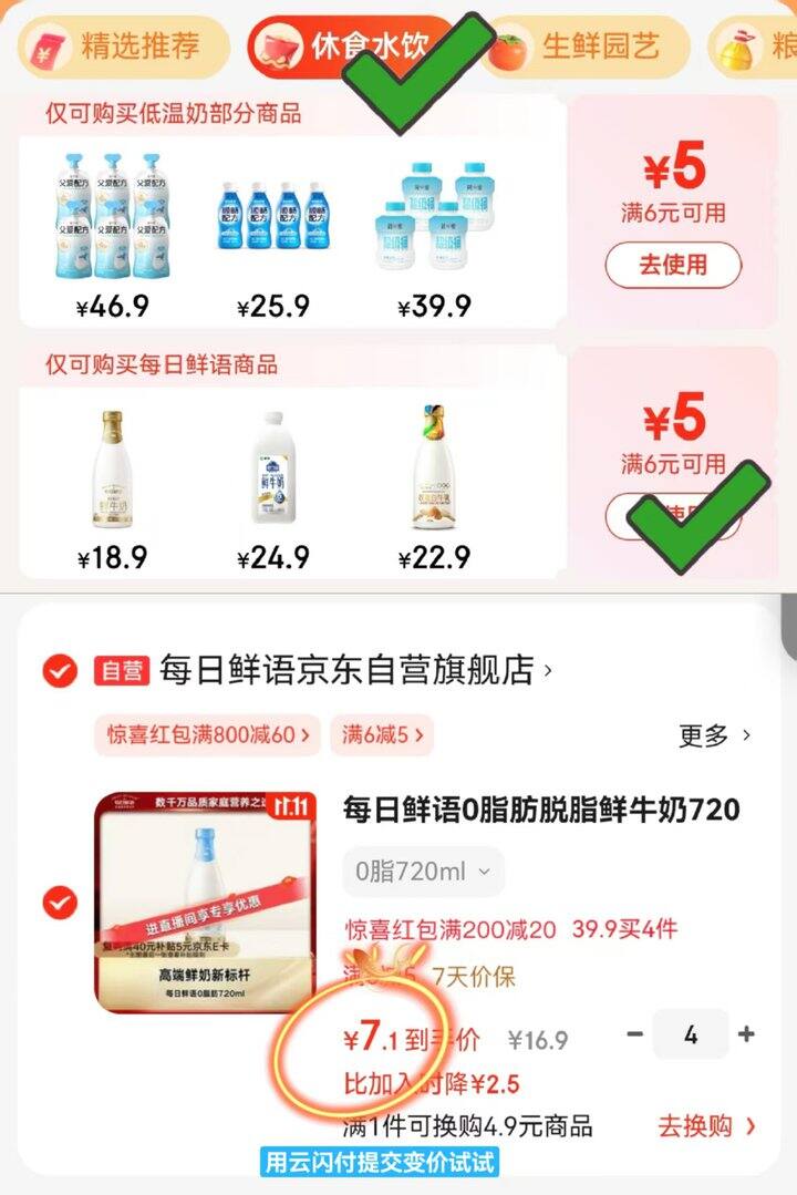 每日鲜语鲜牛奶720ml💰5.35,云闪付可再减