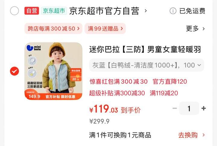 ❷ 宝宝羽绒服到手120
