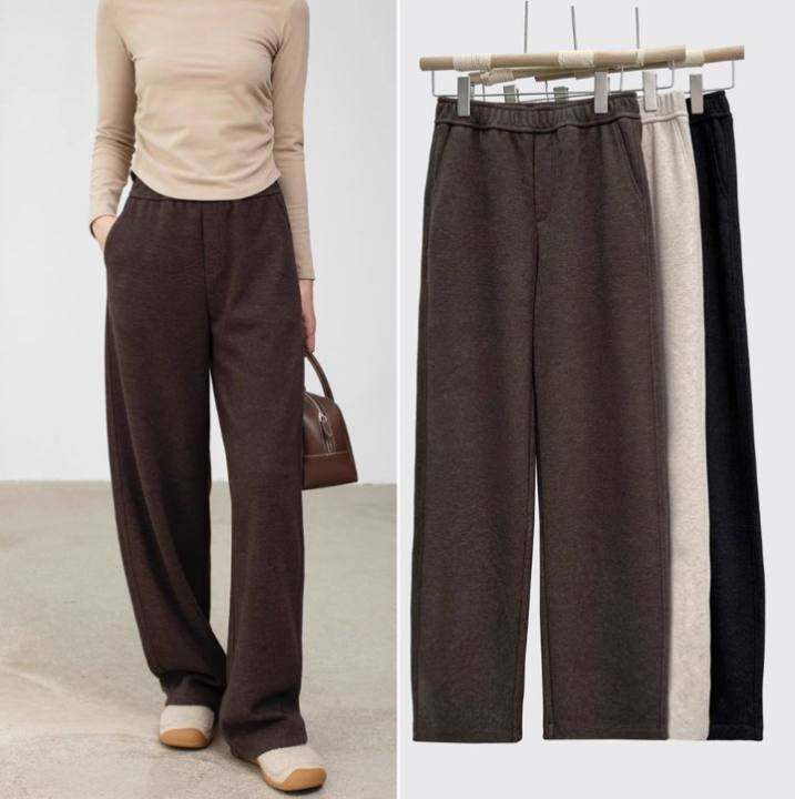 seawhen海维恩秋冬新款气质显瘦显腿长羊毛绒加厚拖地直筒镰刀裤