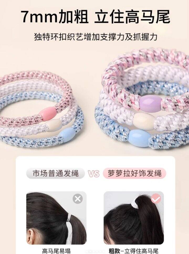 【萝萝拉好饰发绳】可拉伸约28cm,高弹力拿捏各种发型; 内含12条优质乳胶丝,久戴不易变形~