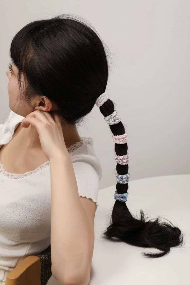 [嘻嘻]电话线的纹理还会显得发量很多,扎一天也不勒头皮。