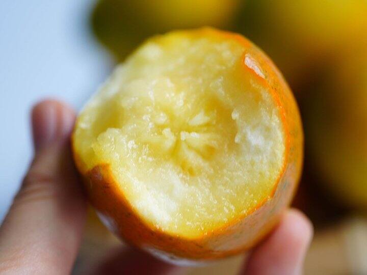 11月份的金桔颜色大概6分黄,但是口感已经是纯甜了~