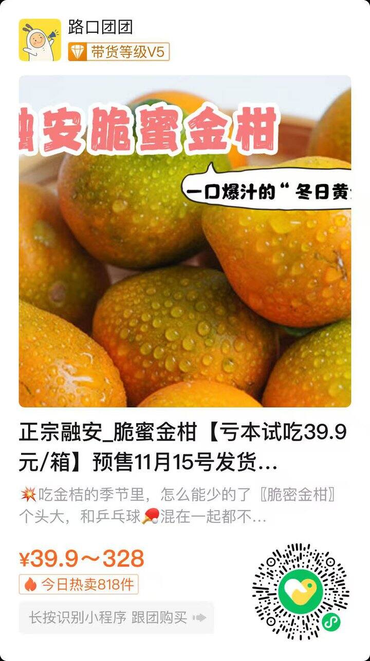 融安_脆蜜金柑【限量试吃】纯甜 大果:1.5斤/箱(30颗左右) 39.9元