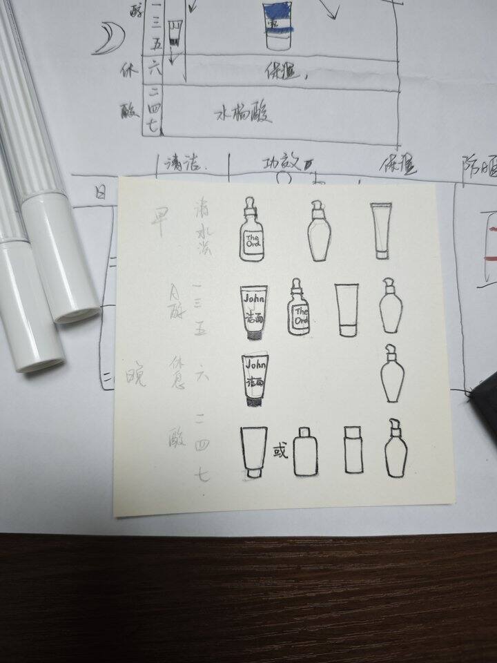 双十一快结束,正好一些护肤品用完了,在小红书找推荐又刷得眼花缭乱,就直接让deepseek补充推荐了新的产品,搭配了一套混油皮使用方案,感觉很麻烦就画出来摆在浴室了(也不知道能坚持几天😂)。