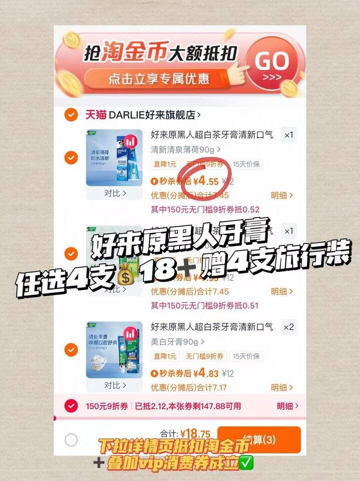 到手4大4小!茶倍健、超白、双重薄荷任选!