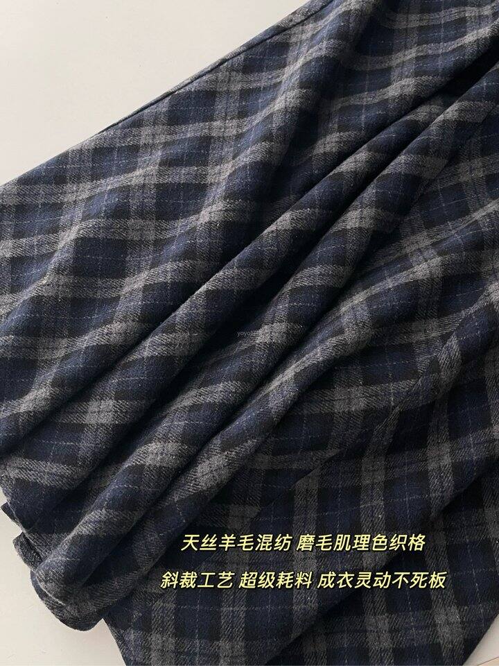 上身就决定要留下磨毛肌理天丝羊毛色织格纹,手感厚实挺阔,保暖力超好,就像随身的小毛毯!