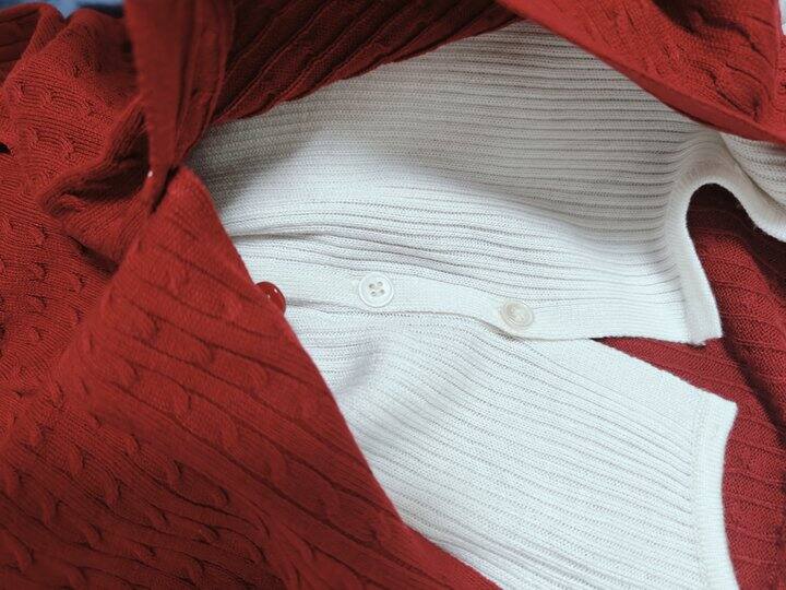 第一张图是非常接近,它本来的颜色很显白,而且这件衣服它是假两件,但是它前面是真的做了两件,而不是做了个假领子。