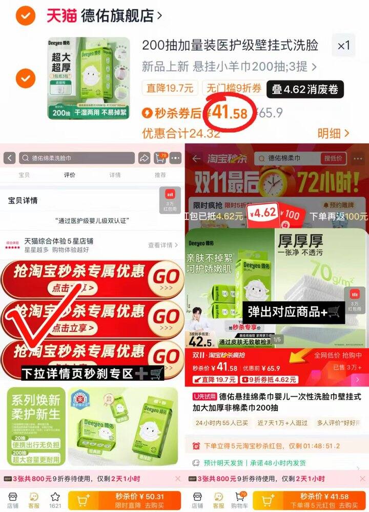 德佑悬挂洗脸巾200抽💰13.8=3包量