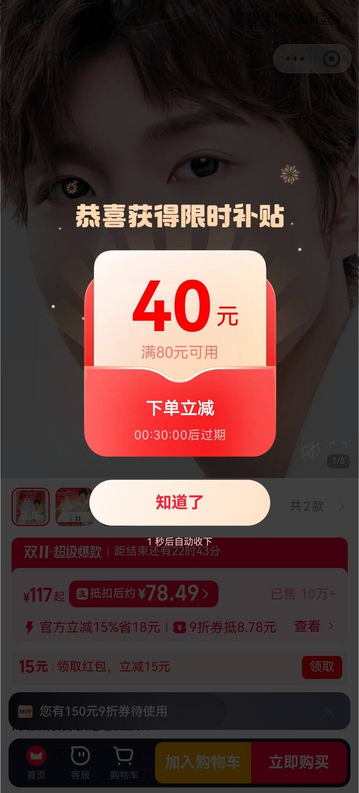昨天没刷出来,今天一刷就刷了,而且还刷了好几张。不过后面没9折了