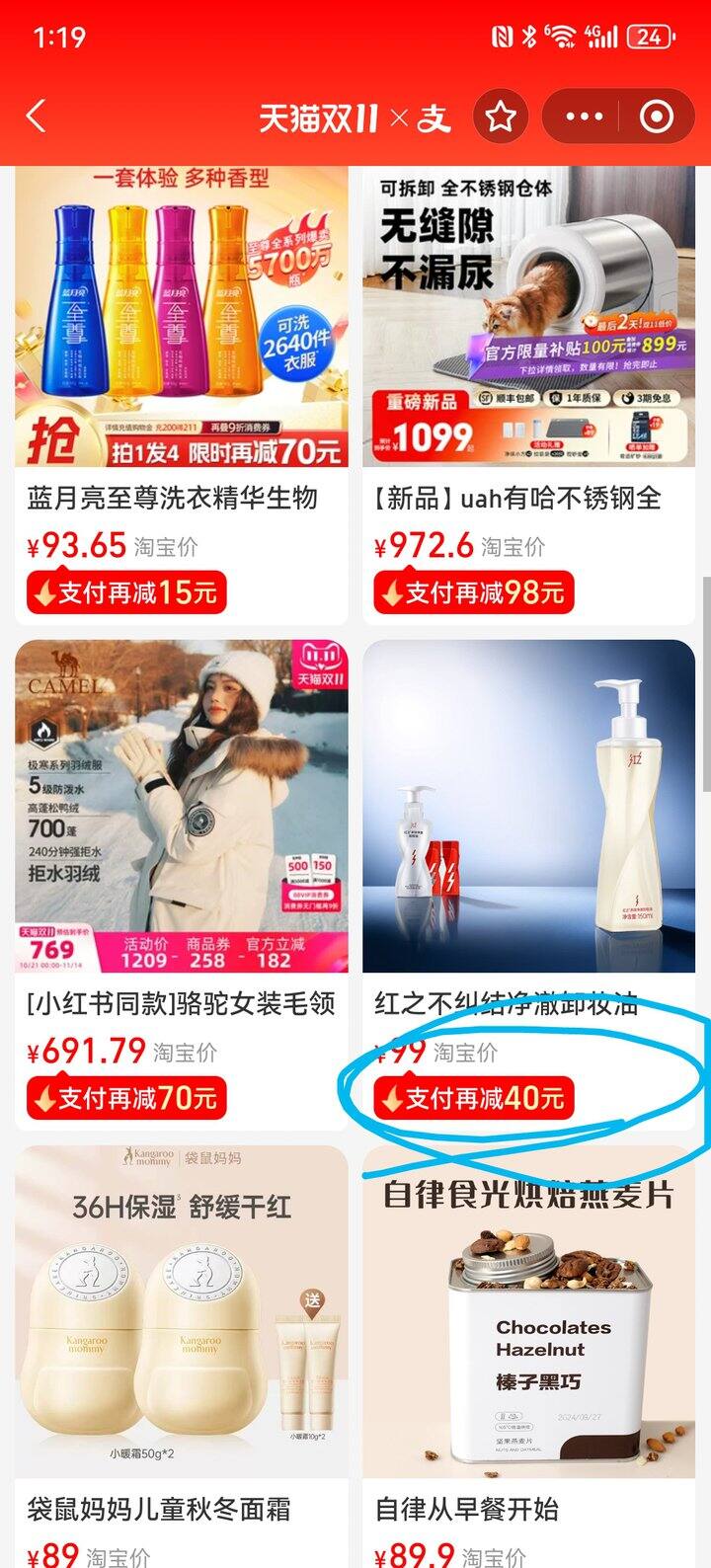支付宝-惊喜市集-刷看到我画圈的那种支付再减40再点进去