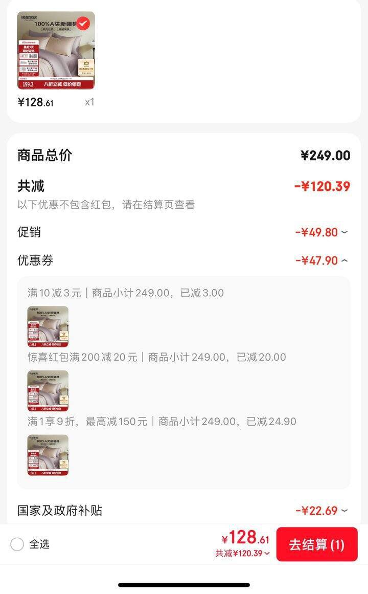 到手128.6