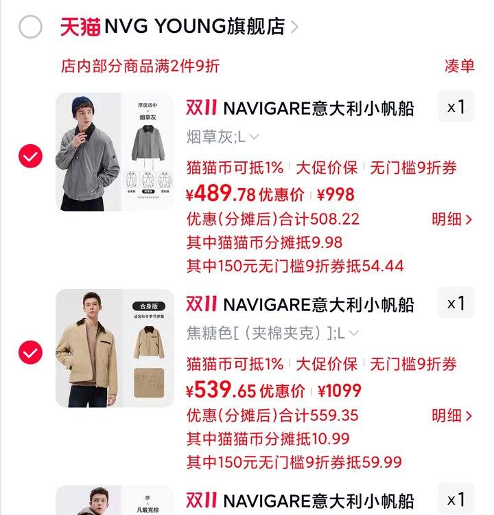 1、意大利小帆船卡其色休闲夹克男士宽松棉服https://m.tb.cn/h.SHn5XZK弹175.8礼金,淘金币页面加购