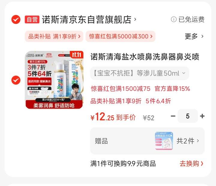 ,浓稠鼻涕要搭配生理盐水,刷到路口推荐这款好价,问了客6个月以上可用,买啦。