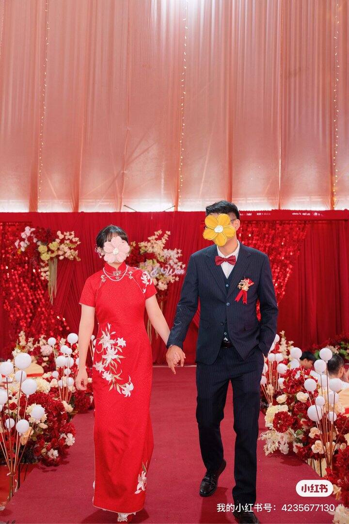 特别美丽的旗袍,布料带细闪,绣花很逼真,有光泽感。