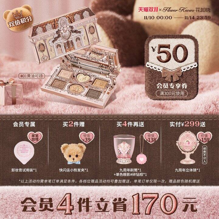 53‼️花知晓甜心小熊眼影盘会员➕赠卸妆膏试用装‼️
