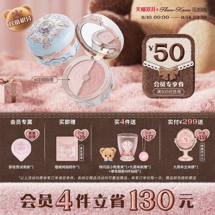 44‼️花知晓甜心小熊腮红赠卸妆膏试用装+拇指粉扑