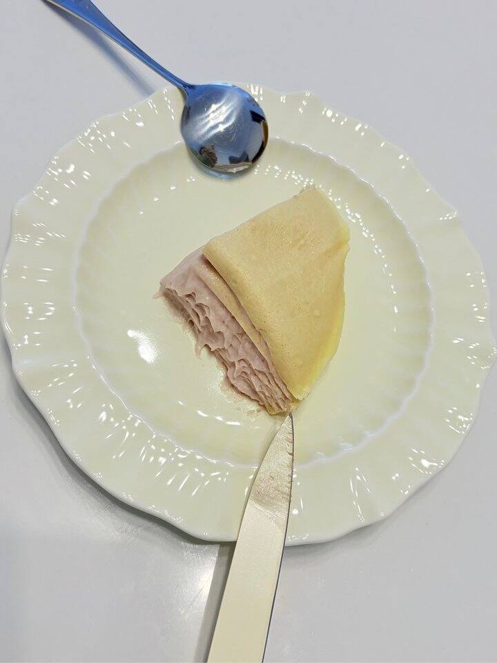 他们家抹茶千层和榴莲千层的皮都有点厚而且干,但是芋泥千层就会好很多。